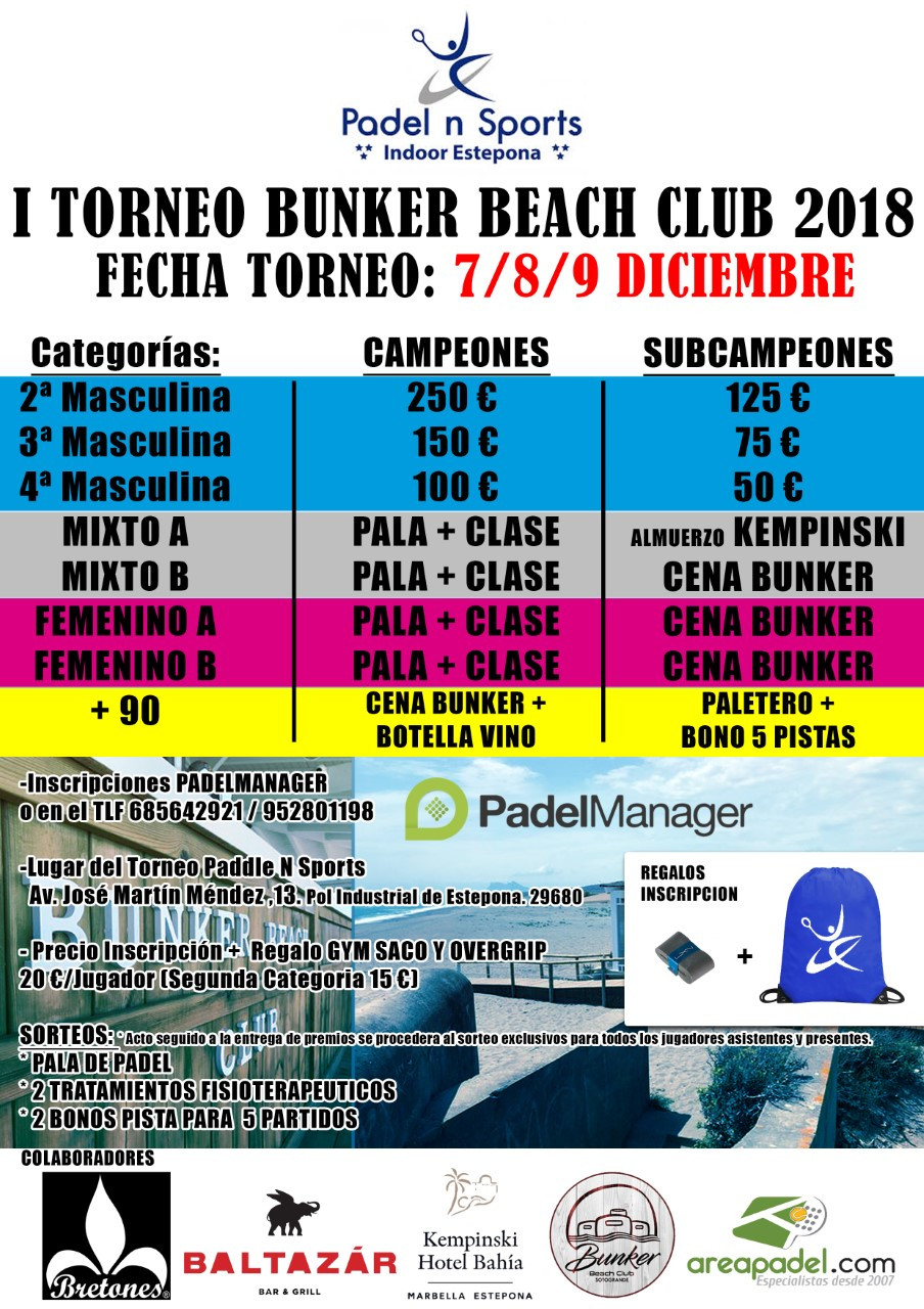 I Torneo Bunker Beach Sotogrande Padel N Sports Dias 7,8 y 9 de diciembre