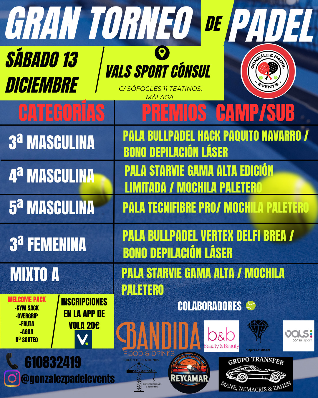 Soy organizador de un torneo amateur con distintas categorias que tendrá lugar los dias 8 y 9 de marzo en Vals sport cónsul. Podeis poneros en contacto conmigo, gracias