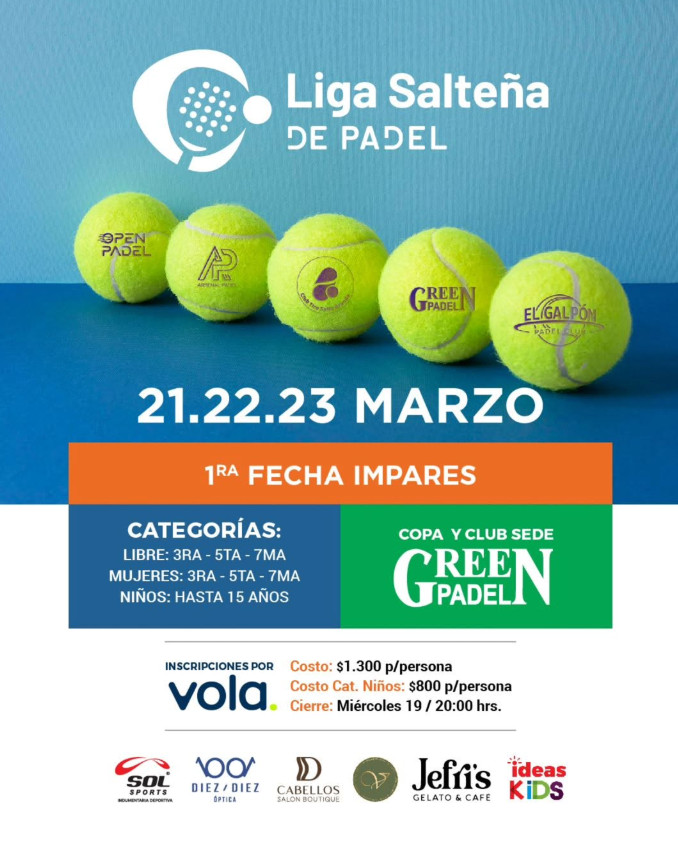 Liga Salteña de padel primera fecha categorías pares